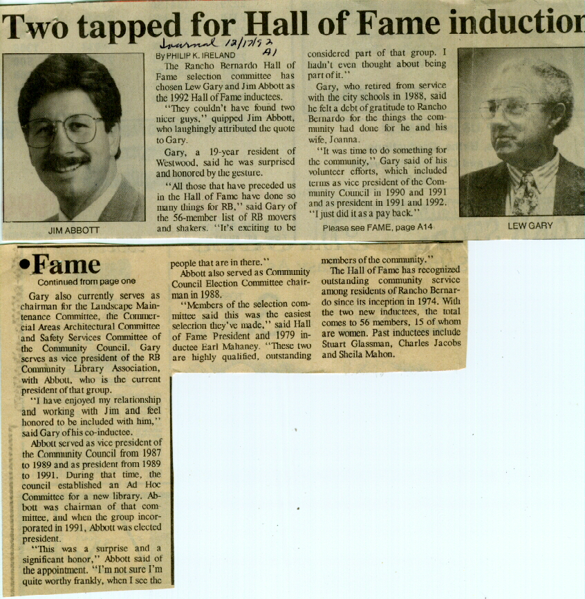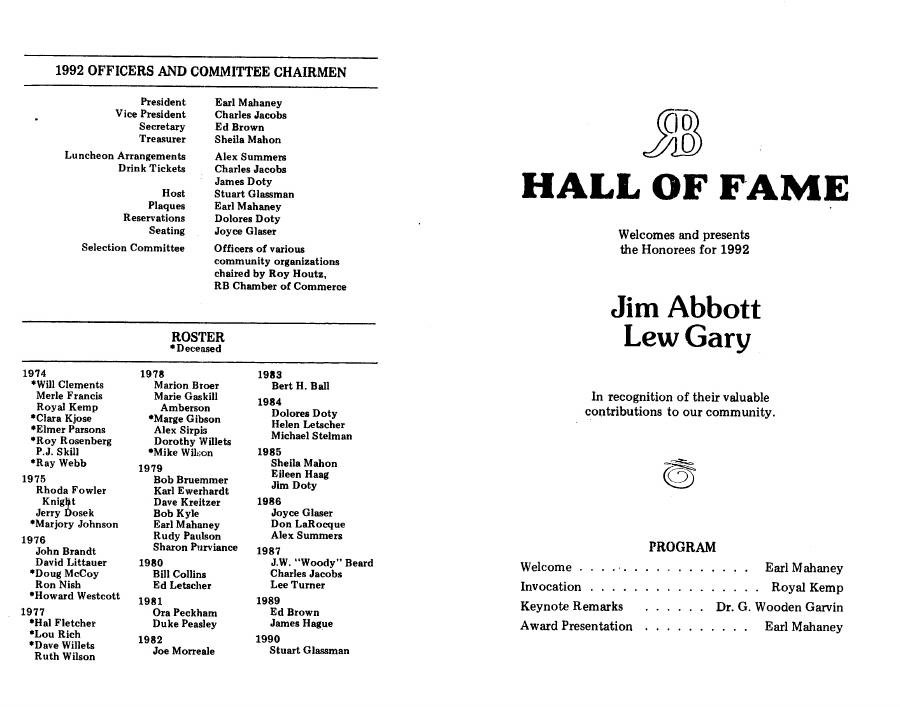 RB Hall of Fame Archives - 1992