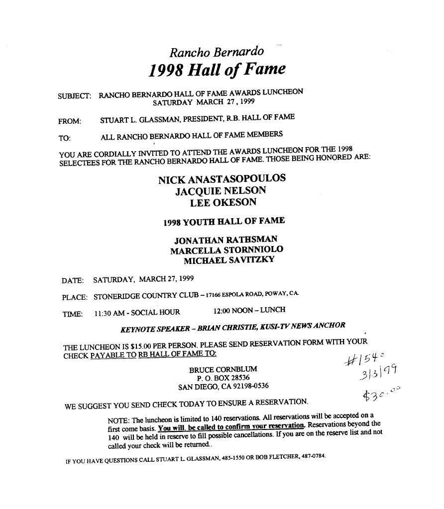 RB Hall of Fame Archives - 1998